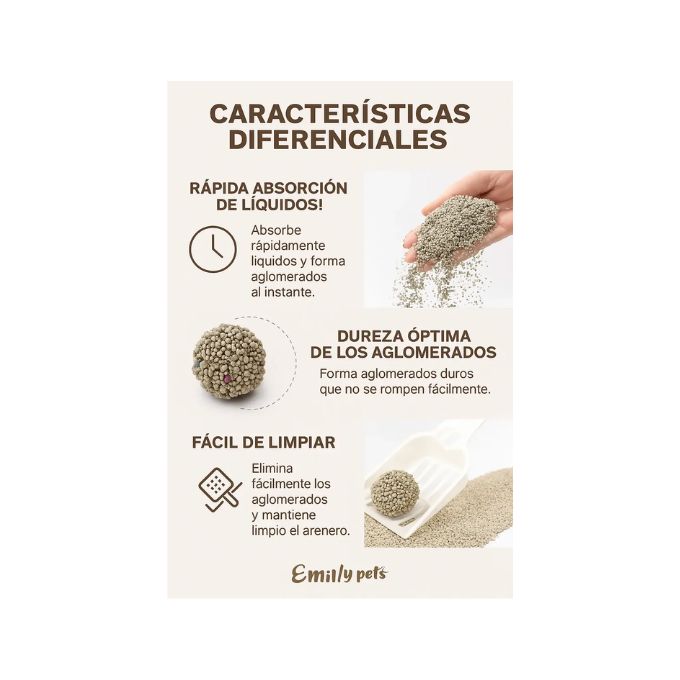 Ultra Aglutinante: Forma terrones sólidos al contacto con los líquidos, permitiendo retirar solo los desechos y mantener el resto de la arena limpia.