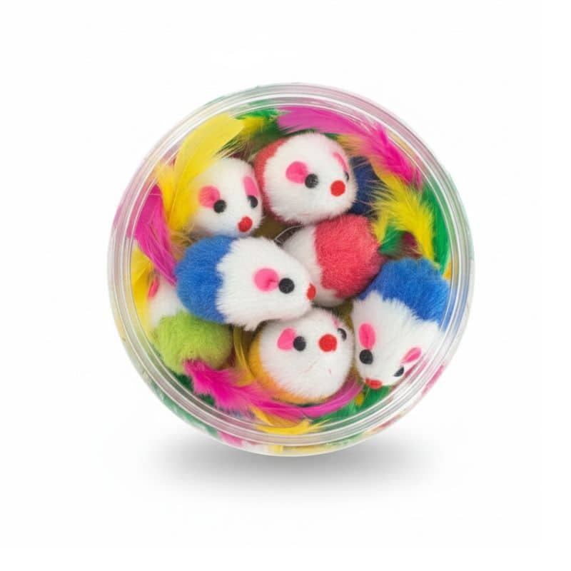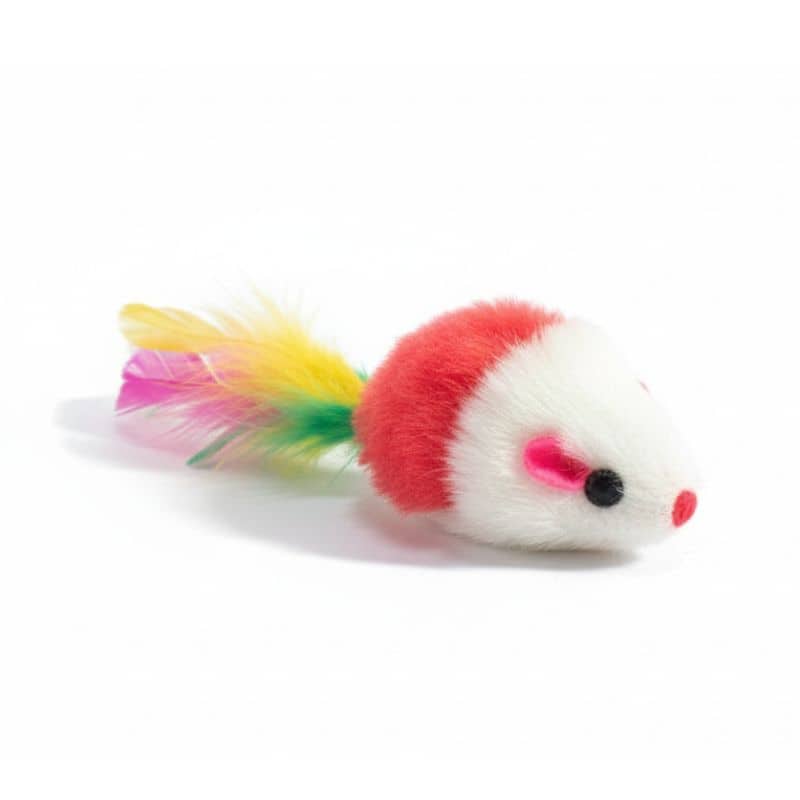 El Ratón de Peluche con Plumas de Colores es un juguete clásico y esencial para todo gato. Diseñado para estimular el instinto natural de caza, su suave textura y su cola de plumas multicolor captan la atención del felino, promoviendo horas de diversión y actividad.